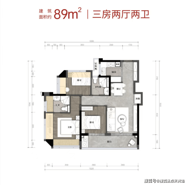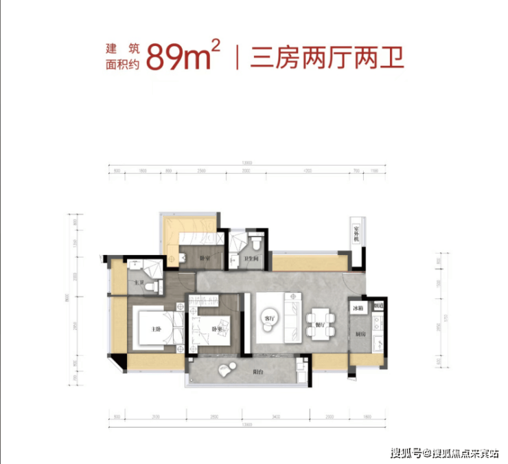 项目本次计划于9月推售1栋188套、10月推售2栋192套,这也是项目的最后两栋产品。户型面积为建面约80-89㎡三房两卫、约107㎡四房,含89㎡横厅新品,新规户型赠送后使用率超100%。