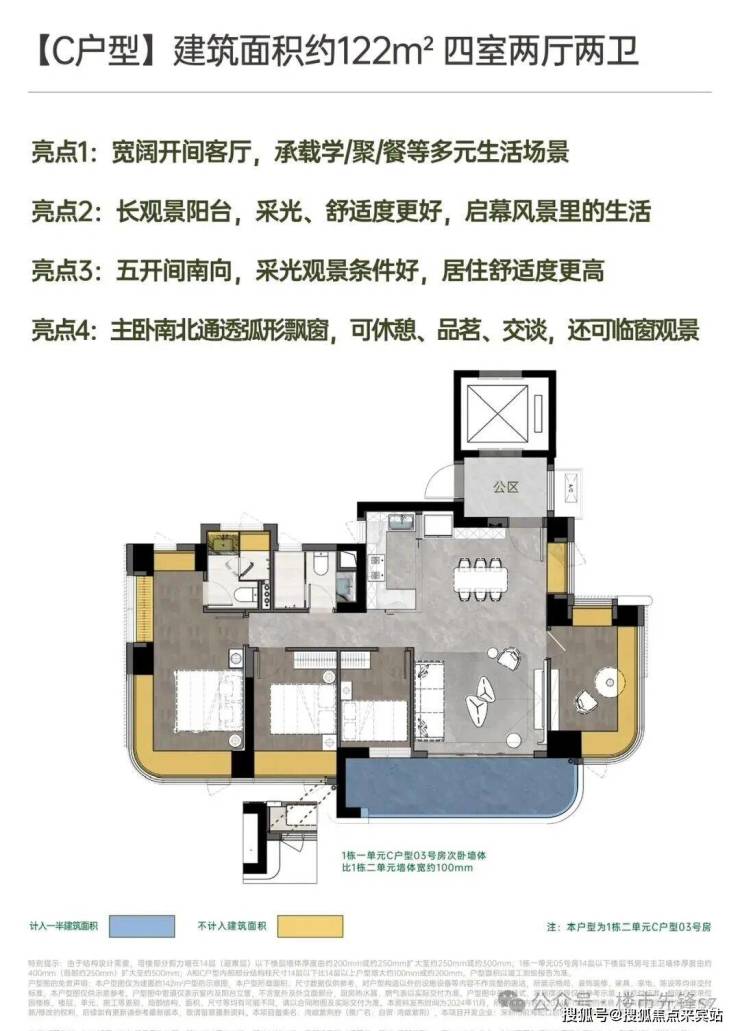• 建面约142㎡南北方厅 阔景四房;• 建面约122㎡五开间全南向四房;• 建面约121㎡开阔横厅高配四房;• 建面约111㎡宽厅阔景 灵动三房;• 建面约96㎡首置优选三房。