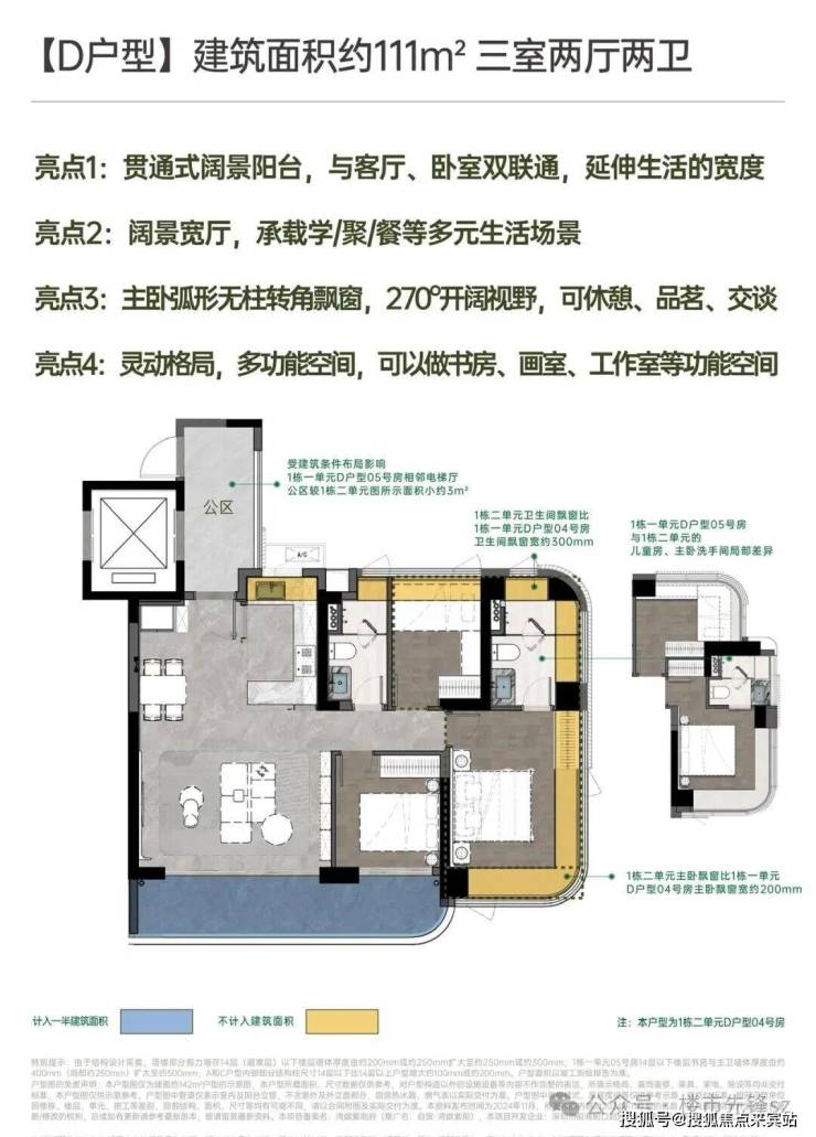 270°弧形无柱大尺度飘窗、大宽厅、大阳台,带来更多使用空间。