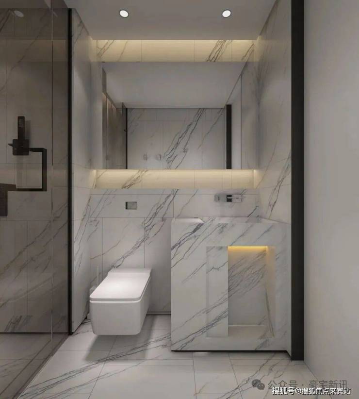 大理石地板、背景墙、休息沙发、吊顶灯饰…都是一线品牌,每一处搭配、细节处理都几乎完美。