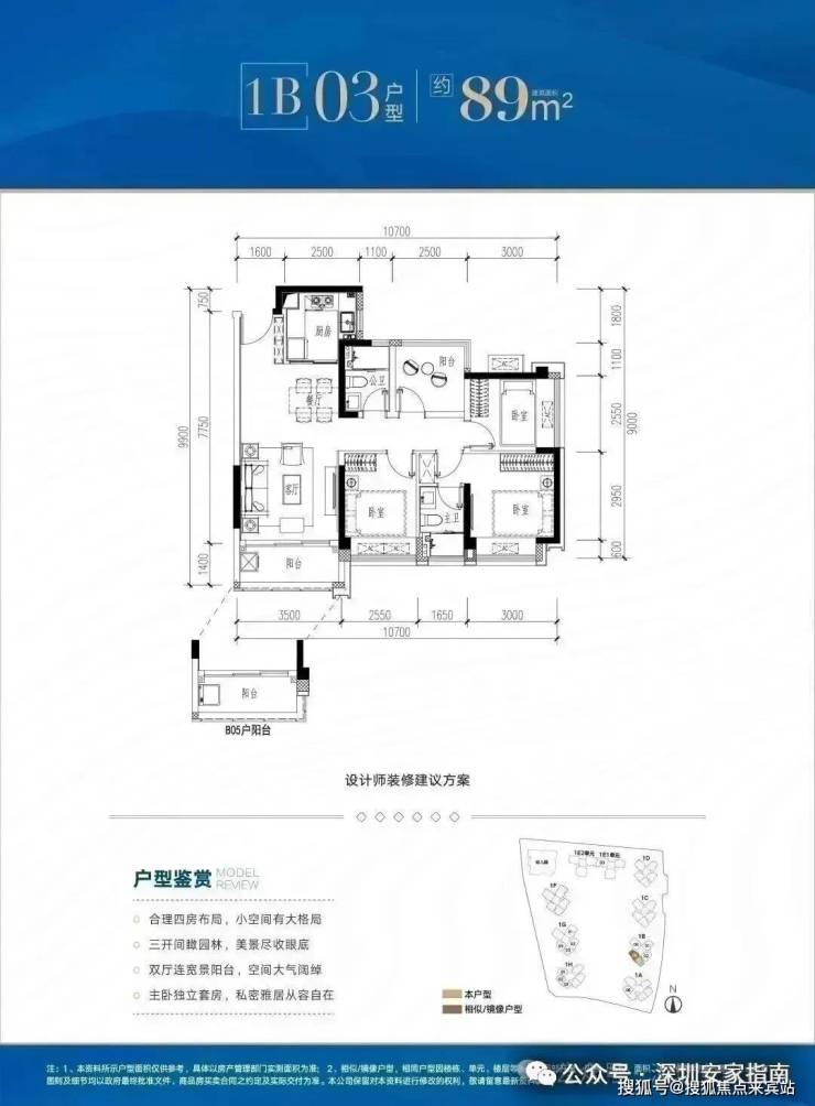✅ B01户型:约89㎡ 四房两厅两卫: