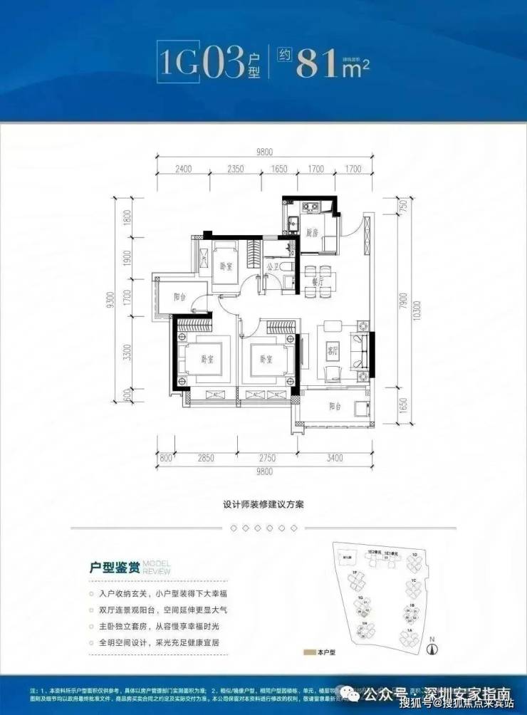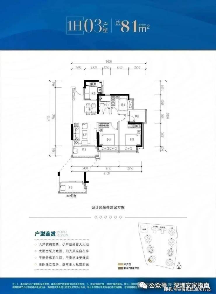 ✅ H02/03户型:约81㎡ 三房两厅两卫: