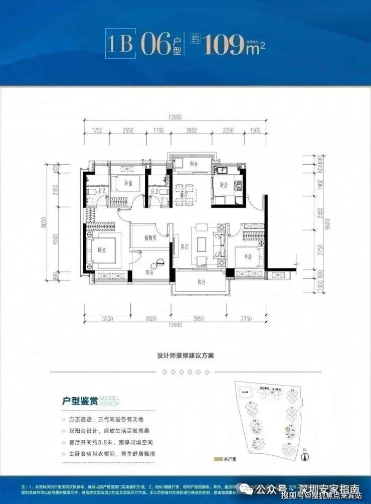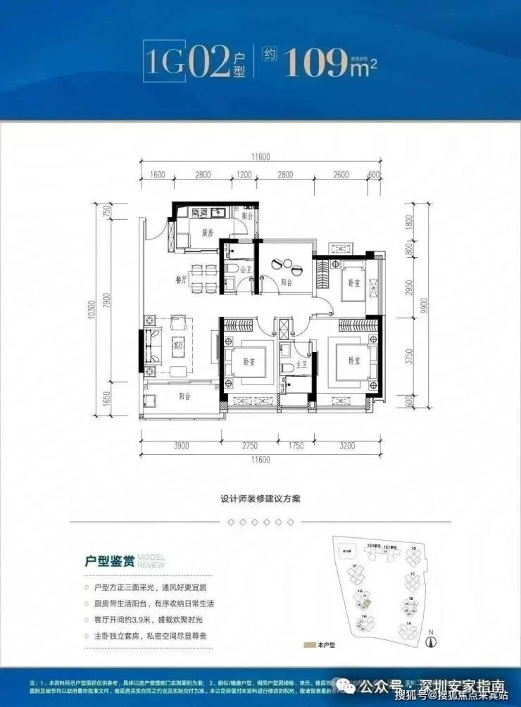 ✅ B06 户型:约109㎡ 阔绰四房两厅两卫: