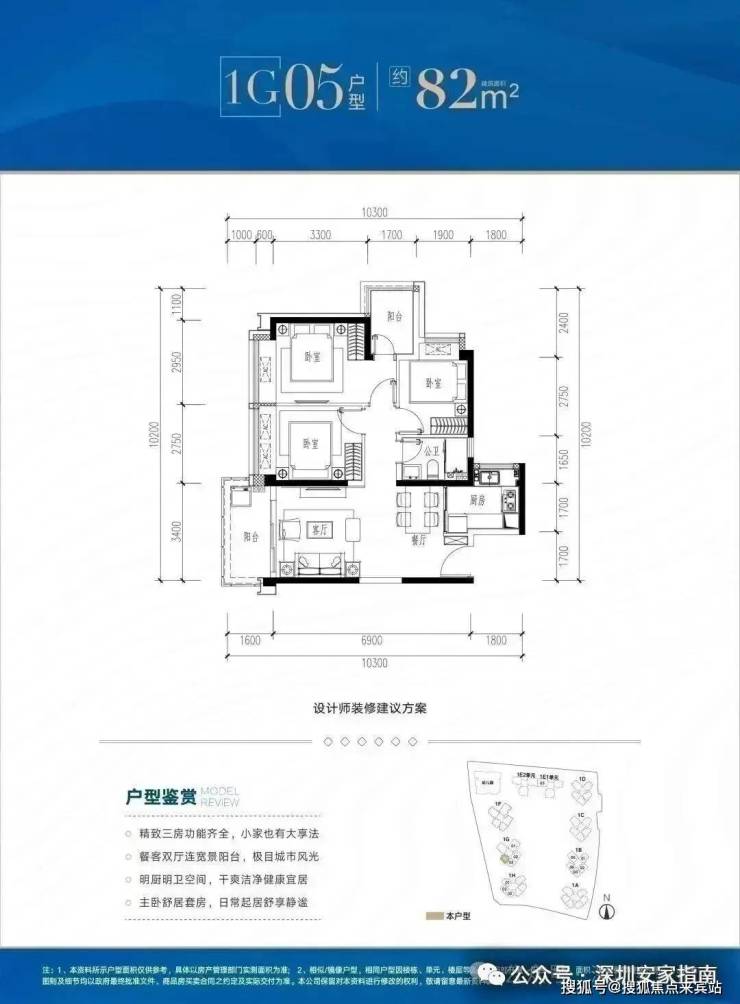 ✅ G05户型:约82㎡ 三房两厅两卫: