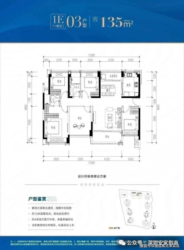 ✅ E03户型:约135㎡ 稀缺五房两厅两卫: