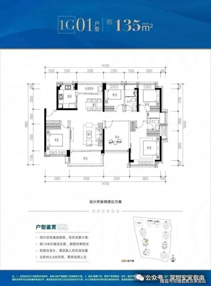 ✅ G01户型:约135㎡ 五房两厅两卫:
