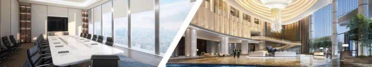 • 典雅商务大堂:15米挑高商务大堂,800㎡奢阔空间,石材奢装,彰显总部企业形象;