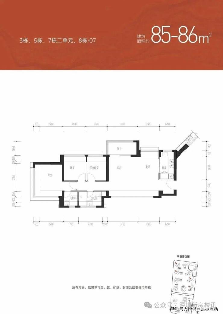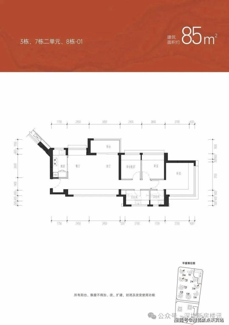 3️⃣85平横厅(3、4楼374万,8楼378万)