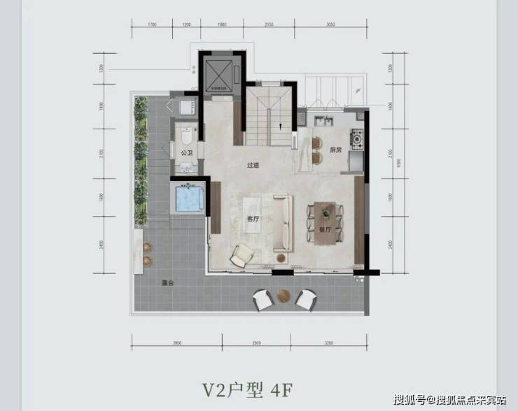 上叠院墅 V2 户型,约 160㎡(或 158.1㎡ ),三室两厅三卫。有私人电梯、双重玄关,约 6.1 米度假观景横厅,270° 三面采光 。约 30㎡L 型花园露台,能欣赏 270° 环幕景观。主卧奢阔,配备步入式衣帽间与独立卫浴,还有可拓展空间随心改造。