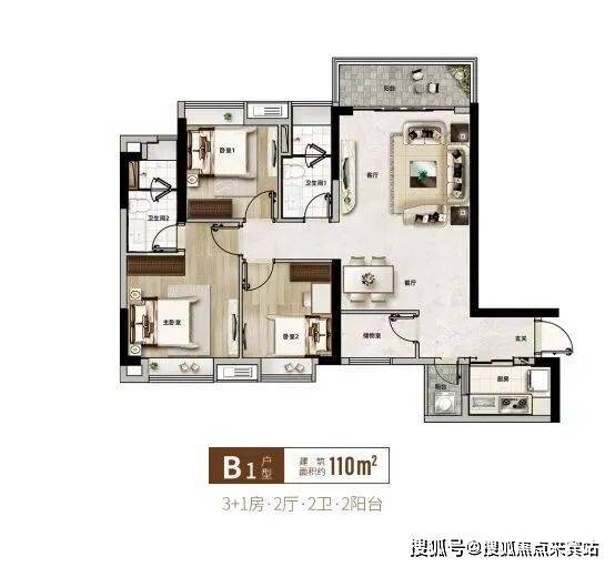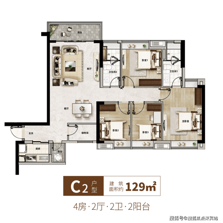 建面约94-129㎡精装三四房·两梯四户