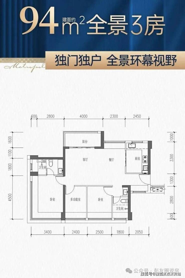 💎 约98㎡ 3+1房2卫 | 都会华幕