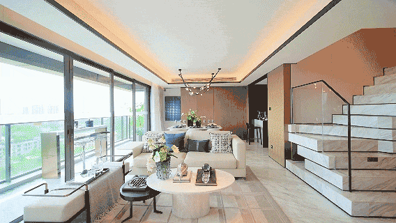 中庭罕有私享庭院,花木扶疏,藤椅闲倚处,一壶清茶氤氲;入户携花香入室,朗阔横厅约7.6米宽景阳台收纳半山繁茂,进退之间,静掌人生舒适平衡。