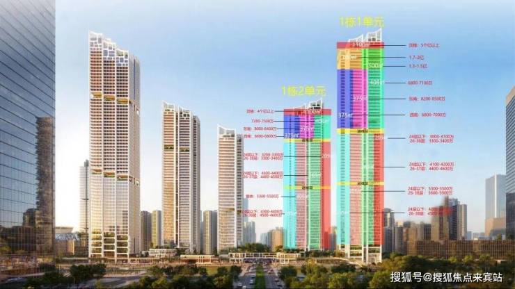 1单元:24楼以下5300-5500万,单价约17.4/㎡-18/㎡