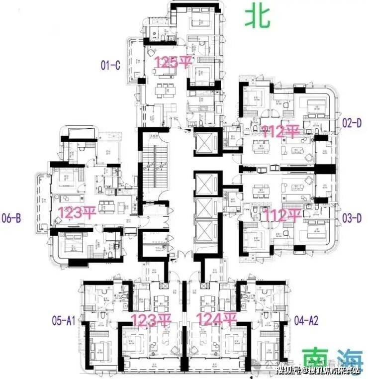 06 B户型——建面约122-124㎡3+1多功能空间:双龙抱珠户型,次卧带阳台。西北朝向看绿地公园及花园。虽然是125㎡户型中总价最低的,但仍保持高标准的空间尺度和配置,适合注重实用性的改善家庭,属于性价比之王。