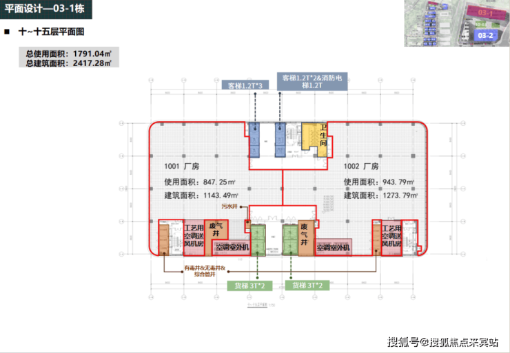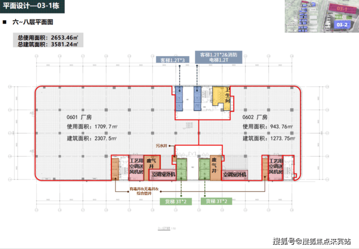 项目建面约101.9万㎡,厂房约81.9万㎡(34.9万㎡租赁+47万㎡销售),公寓2.5万㎡全自持,商业0.2万㎡全自持,食堂1.62万㎡全自持,是一个超大型“工业上楼”产业园区;