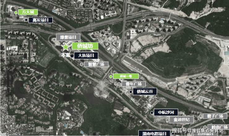 公路交通:侨香路/北环大道/广深高速,三大主干道环绕,25分通达全城