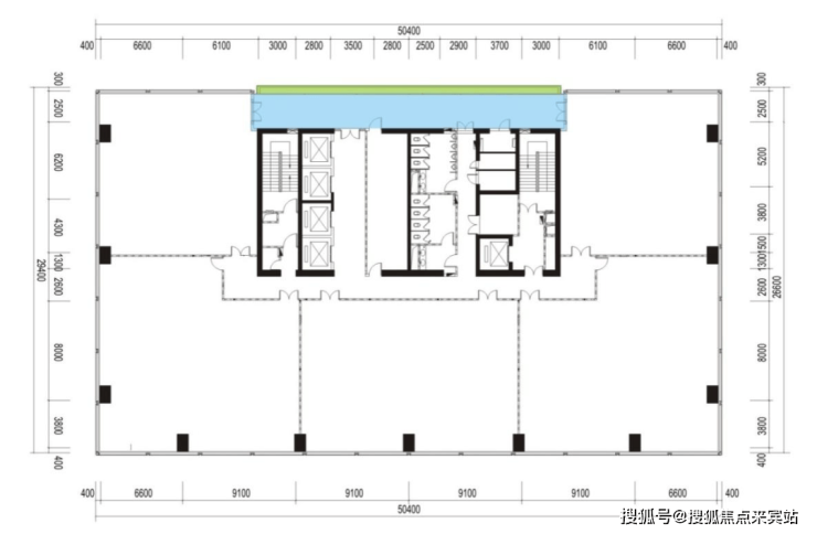 偏核心筒设计:户型方正,采光最大化,整层使用率可达约83%