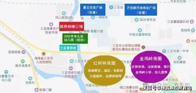 学校:东北侧第八小学、三亚市一中、海航学院,热带海洋学院。
