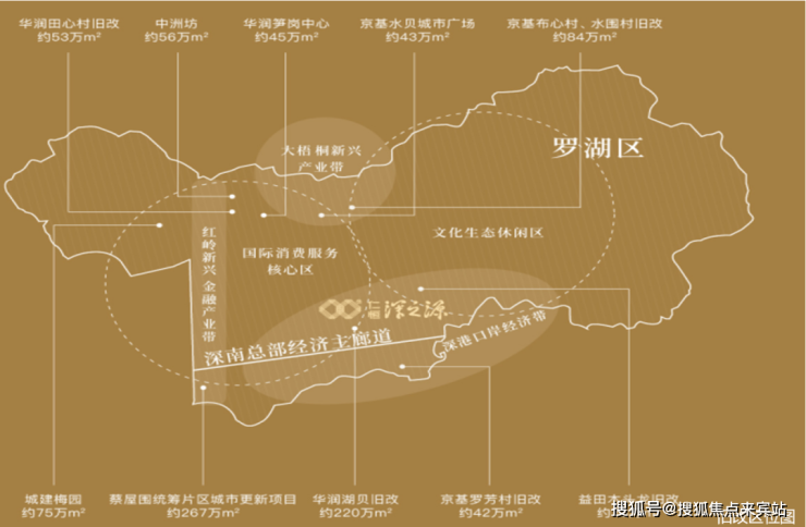 ◎罗湖四大千亿片区,华润、招商、中海、仁恒、京基、天健等十余家房企云集。