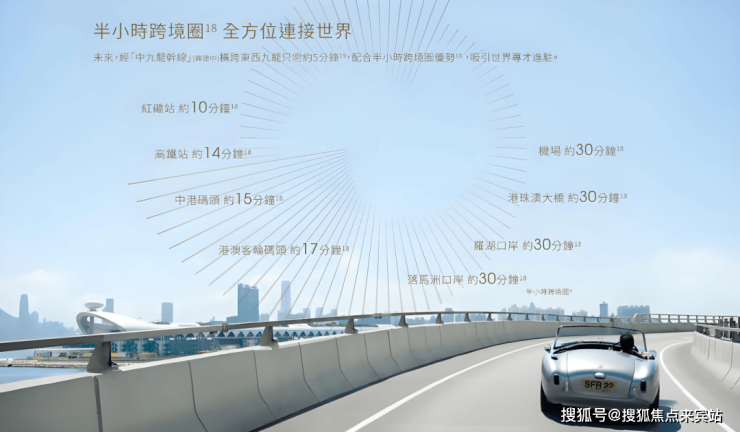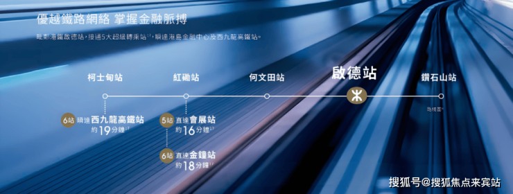 经「中九龙干线」(兴建中)横跨东西九龙只需约5分钟,配合半小时跨境圈优势,吸引世界专才进驻。