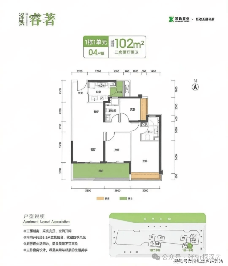 深铁睿著广场,由深铁集团打造,总占地面积约1.6万㎡,总建筑面积约10.9万㎡,计容建筑面积约7.97万㎡,容积率4.99,绿化率30%,共由2栋31层高的住宅组成,分别是1栋1/2单元,另外2栋规划1所写字楼32层,跟小区是分开管理的,不共享花园。