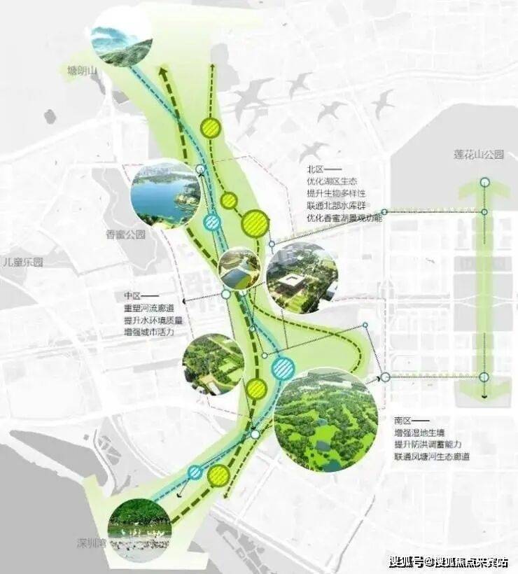 区域内,还规划打造香蜜湖水廊,一直通向深圳湾,沿水廊建成城市公园、绿道和城市慢行道,高尔夫球场西侧约1/3的面积也纳入这个规划,将建成体育公园。