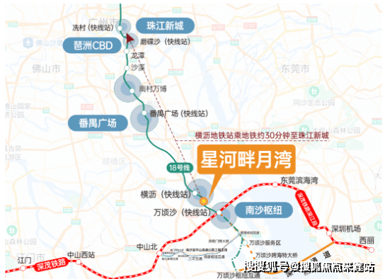 星河畔月湾地处明珠湾区,位于国际金融岛、南沙枢纽 TOD 枢纽交汇的万顷沙板块,与横沥岛隔江相望。南沙作为湾区几何中心和广州城市副中心,拥有国家级新区和自贸区等多重战略定位,发展潜力巨大。