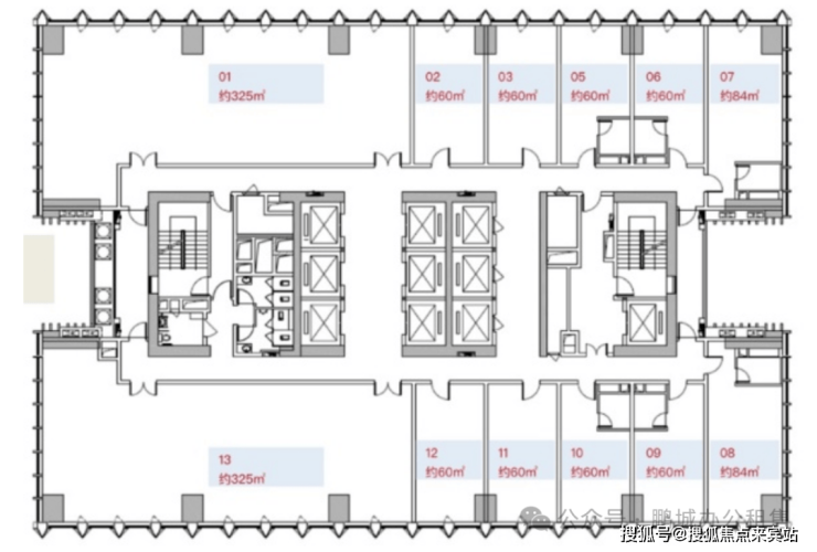 标准层面积:约1290㎡
