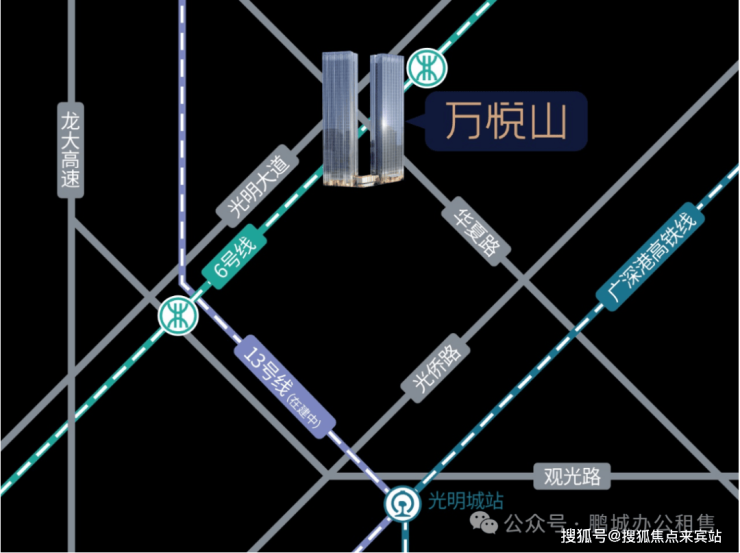 宏发万悦山项目集高端住宅、特色十字商业街、商务办公一体,是多业态职住平衡的城市综合体。宏发万悦山大厦作为其中的标杆写字楼,以约180地标双塔之姿,成为光明大道封面资产。