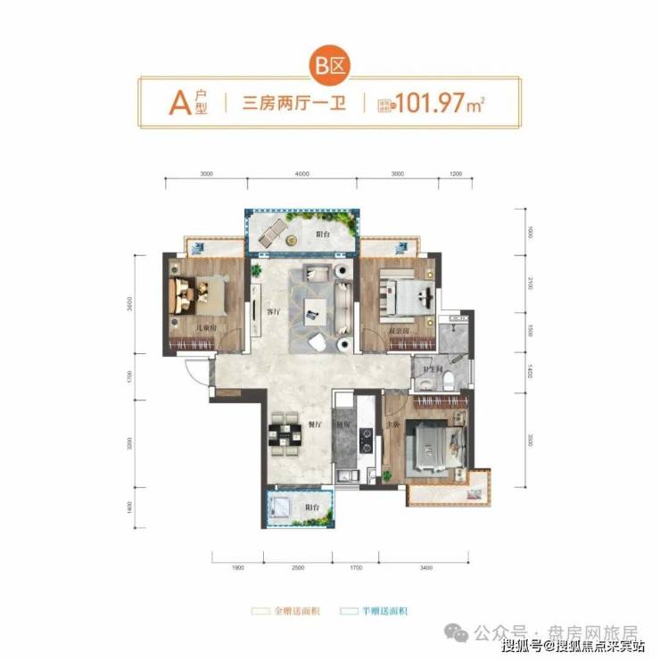 D户型:104平精致3房,奢阔双阳台安放生活与诗意,室室大飘窗百变功能随意造