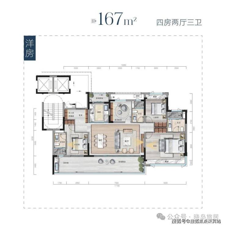 户型:113-163㎡宽境大宅,多开间朝南,大面宽布局,采光通风俱佳。