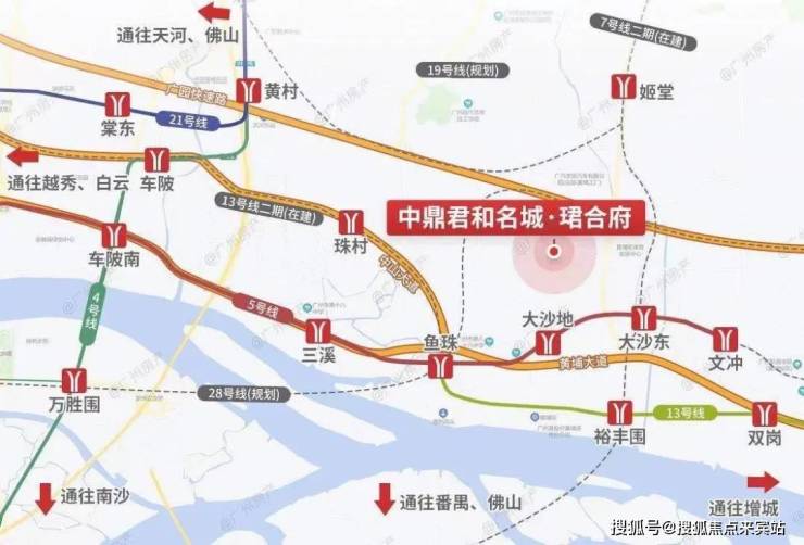 5号线大沙地站(约800米)、7号线二期大沙东站(在建中)、13号线裕丰围站,黄金3地铁交汇;广园快速、黄埔大道、中山大道、临江大道、广深沿江高速、广州环城高速,广州绕城高速“5横2纵”路网环绕;未来规划建设2条有轨电车及5个码头,不仅通达全城,更畅通湾区。