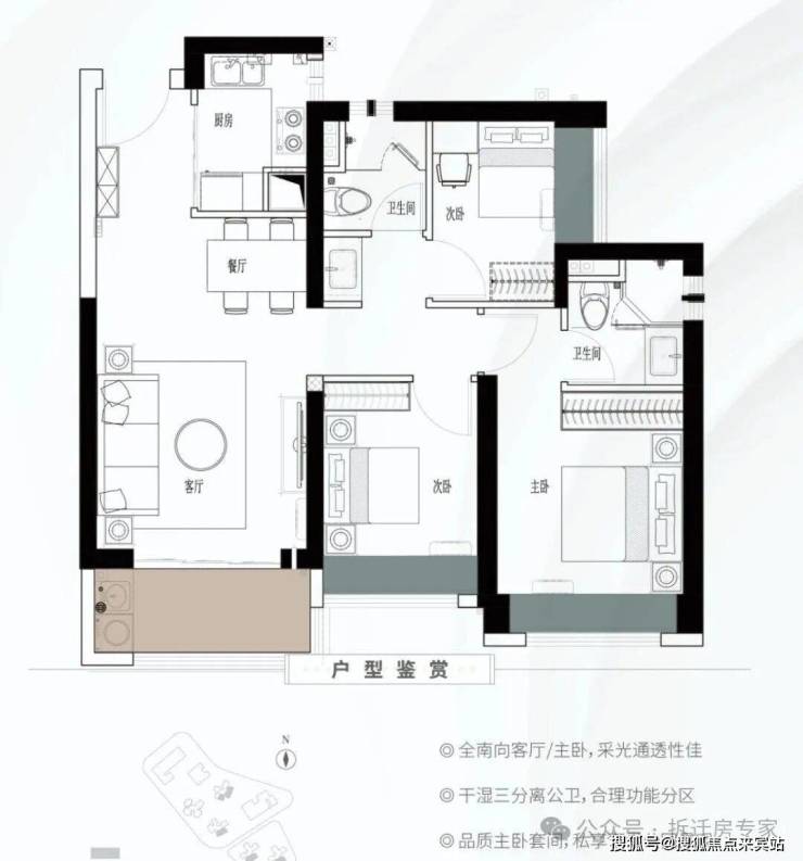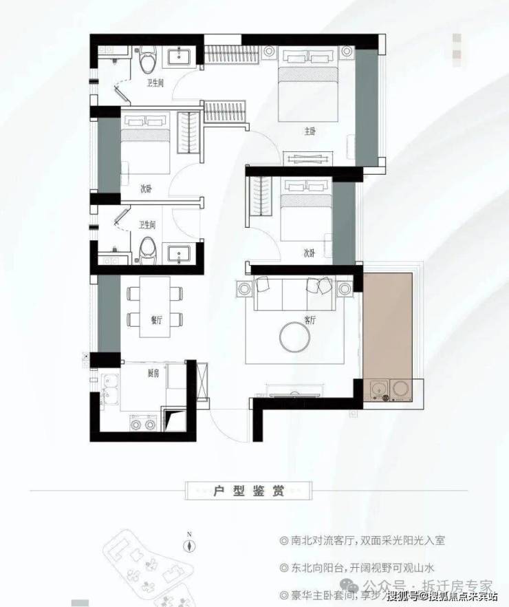 以下为:B2户型——建面约95㎡ 三房两厅两卫