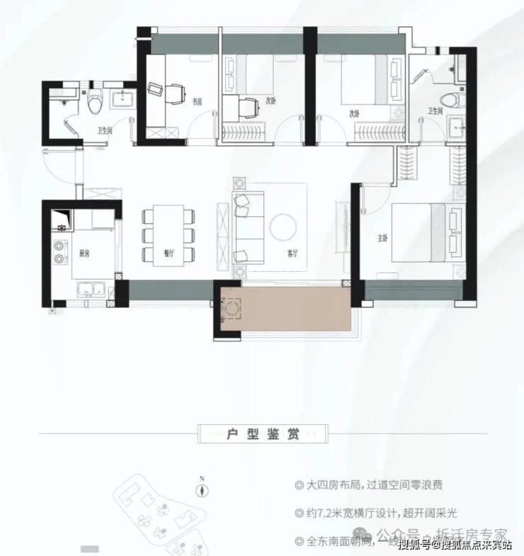 以下为:C户型——建面约120㎡ 四房两厅两卫