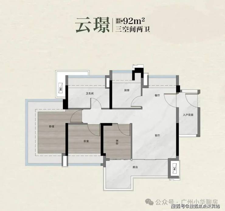 3栋塔楼,包含建面89㎡、92-99㎡户型,通过阳台延伸空间感,贴合了年轻家庭对总价和功能性的双重诉求。