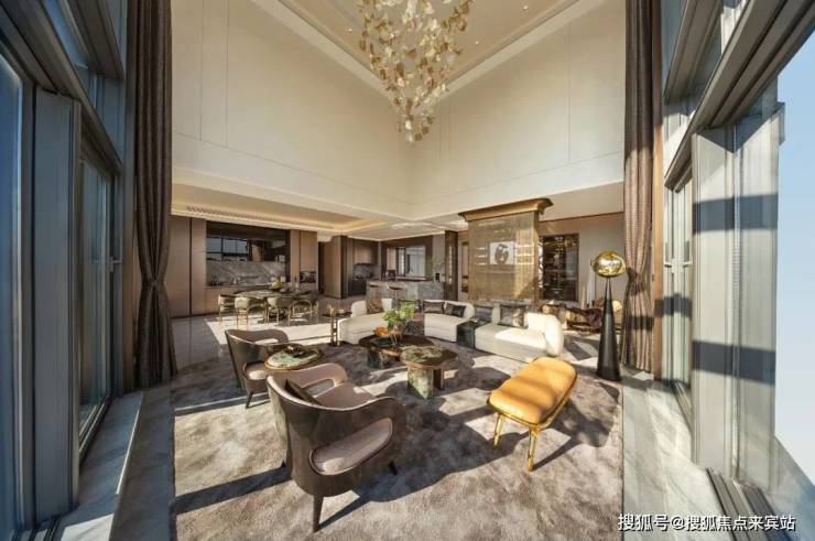 竖向尺度一定程度上决定了空间的体感,本项目利用户型的上下咬合,开创性地打造了佛山首例的华南空中院馆通高客厅,充分利用立体空间设置奇偶错叠的组合,在采光面充足的位置使用了创新的复式户型结构。每户3.15-3.5米墅级层高,结合全景飘窗,将空间在横向与纵向上都做到满格,室内外相融,以大开大合的空间体验,回应阔朗的场域气质。