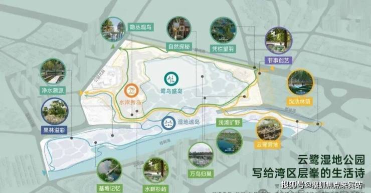 整个公园打造3大主题岛屿、3大游径,串联湿地博物馆、湿地栈道、果基鱼塘、游船码头、云鹭市集、亲子乐园、城市营地等 12 个游玩打卡点,将是家门口集自然+休闲+科教+研学+游憩等多元一体的沉浸式公园体验。