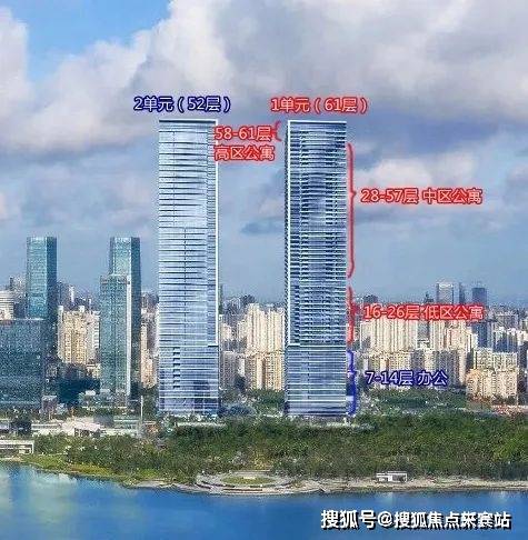 由三栋超高层建筑以及下沉式商业组成,其中写字楼高度约310m,将与华润“春笋”(约392米)、深圳湾壹号主塔楼(350米)共同支撑深圳湾后海总部基地的天际高度,公寓高度约255m,建面约160-580㎡2-5房。