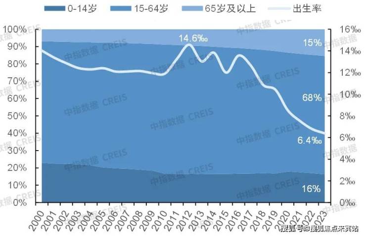 近两年我国劳动年龄人口有所减少,15-64岁的劳动人口比例已由2020年的70.1%降至68.3%,而65岁以上人口比例达15.4%。与此同时,2023年,我国出生人口902万人,5年内已下降近40%,不足2016年出生人口的一半,出生率6.4‰,创出历史新低。2016年我国实施“全面二孩政策”,出生率在当年有所提升,2021年“三孩政策”出台后出生率下降趋势稍有缓解,但未改下行趋势。