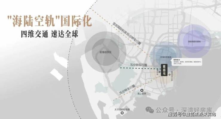 片区依托三纵四横道路交通及深圳湾关口约200米,实现深港链接;25分钟可达香港中环、香港国际机场;并且依托沿江高速可快速到达广州、珠三角等地。