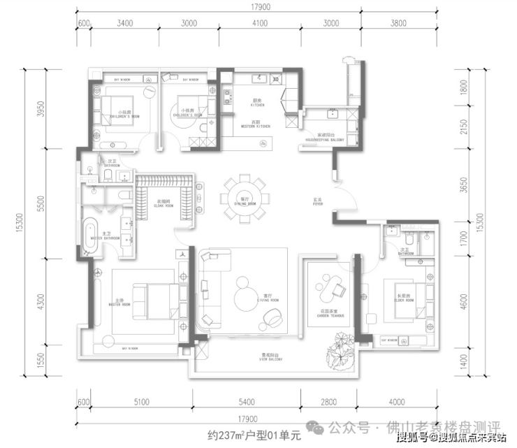 【237㎡:4+1户型两厅双厨三卫】四开间朝南,约 70㎡客餐厅一体化设计,8.2米开间L型阔景阳台