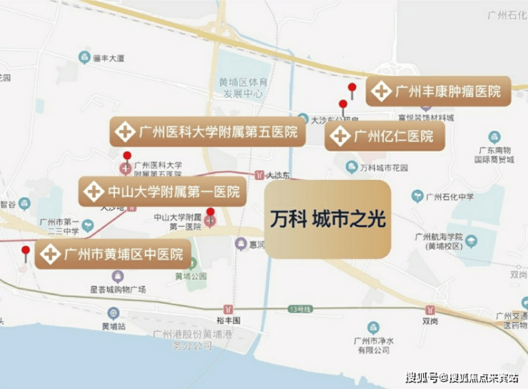 项目驱车3分钟即达区内三甲医院中大附属第一医院,5分钟到达广医大附属第五医院(三甲),周边涵盖黄埔区中医医院(二甲)、广州市黄埔区妇幼保健院、广州丰康肿瘤医院、亿仁医院等多家高品质医疗机构。