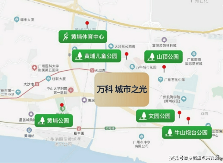 四地铁上盖:5/7/13号地铁线环绕,大沙东站/文冲站/裕丰围站/双岗站4个地铁站上盖,未来7号线二期直通科学城及广州南站。