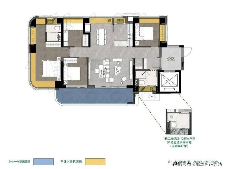 灵动空间格局,因更高的获得感而松弛• 四梯五户,独立电梯厅;• 户户均有南向视野,空间格局通透敞亮;• 270°弧形无柱大尺度飘窗、大宽厅、大阳台,带来更多使用空间。