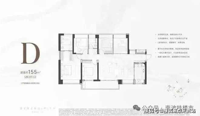 总建面约19.5万m²,包括住宅、商业(800m²)和幼儿园等配套用房。一共5栋楼,分为东西区,首推的是西区(1栋+3栋)334套住宅,其中1栋37层,2梯4户,3栋36层,3梯6户,2026年6月底精装修交楼。