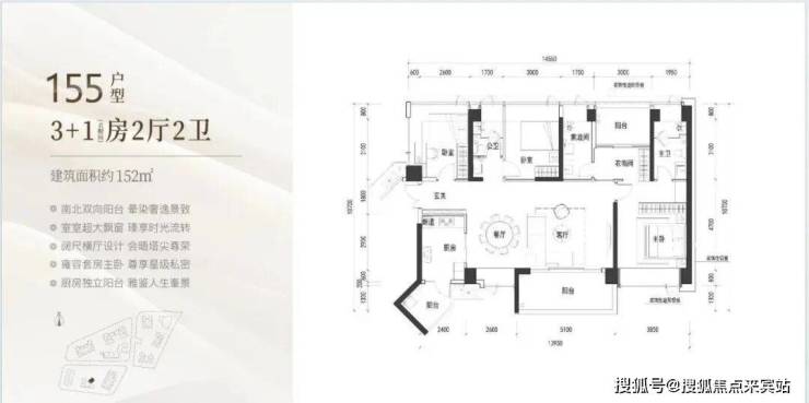 105㎡: 竖厅格局,客厅与卧室连通超大阳台,LDK一体化设计,主卧室270度转角飘窗,看城市景观,主要朝向为西南和东南