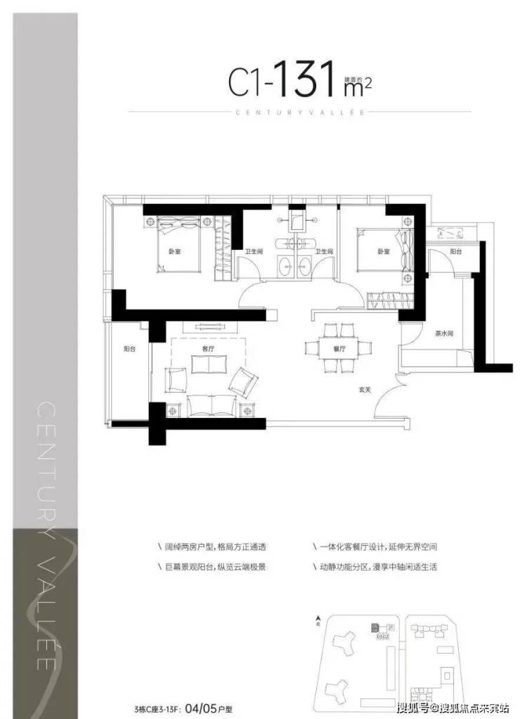 C1户型——建面约131㎡2室2厅2阳台