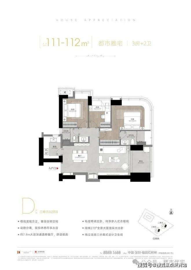 建面约111-112㎡ 3房2卫,折后总价1023-1134万;