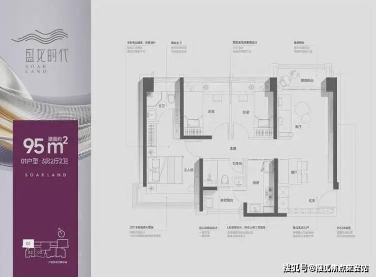 【户型面积】约99㎡3+1房2卫/95㎡3房2卫