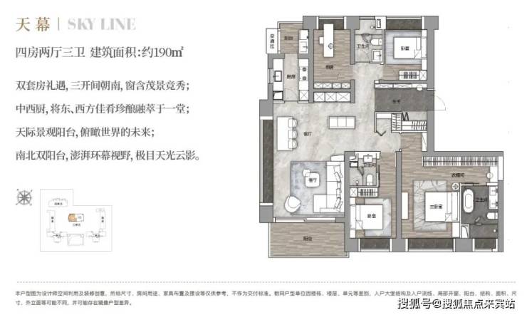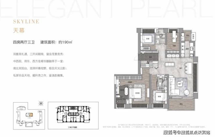 住宅主推户型建面约127-190.7㎡,均价约10.6万/㎡,单价区间在9.2-13.4万/㎡,总价区间在1174-2556万/套。